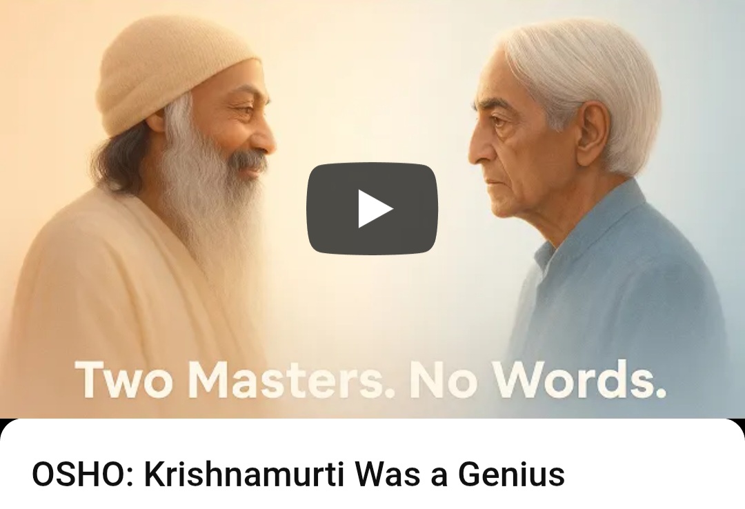 >>Krishnamurti hat nie direkt etwas über Osho gesagt. Jedoch war er gegen jede Form von „Meister, Lehrer“ oder ähnlichem und Osho Verstand sich selber als solcher.. So ist die Botschaft beider im ureigenen Sinn eigentlich die selbe! Aber Osho vermittelt sie, in der Tradition großer Zen-Meister, indirekt also auf Umwegen, eher angepasst an einzelne Individuen. -Während Krishnamurti einzig absolute Wahrheiten ausspricht und dabei für niemanden Kompromisse macht. Was aber dazu führt, dass eigentlich erst ein „am Ziel“ Angekommener (Erleuchteter) ihn wirklich verstehen kann.. Osho hingegen versucht jeden an die Hand zu nehmen und zur „Erleuchtung“ zu führen.<<
