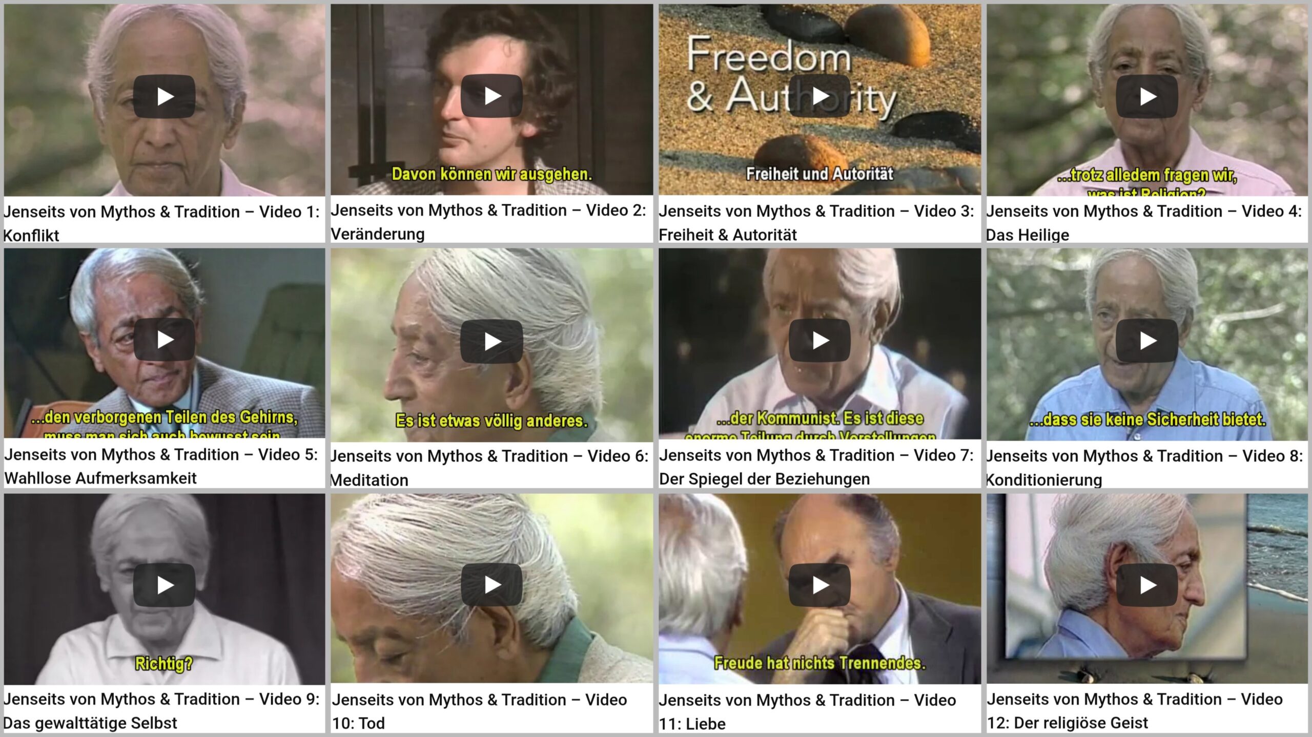 https://liebevoll-wei.se/jenseits-von-mythos-tradition/ Auszüge aus Reden & Gesprächen Jiddu Krishnamurtis zu Ursachen und Folgen der Konflikte in und zwischen den Menschen und über die grundlegende Frage, ob ein Leben ohne Konflikte möglich ist.Hier (m)ein PDF-Buch über seine letzte Rede in der Schweiz