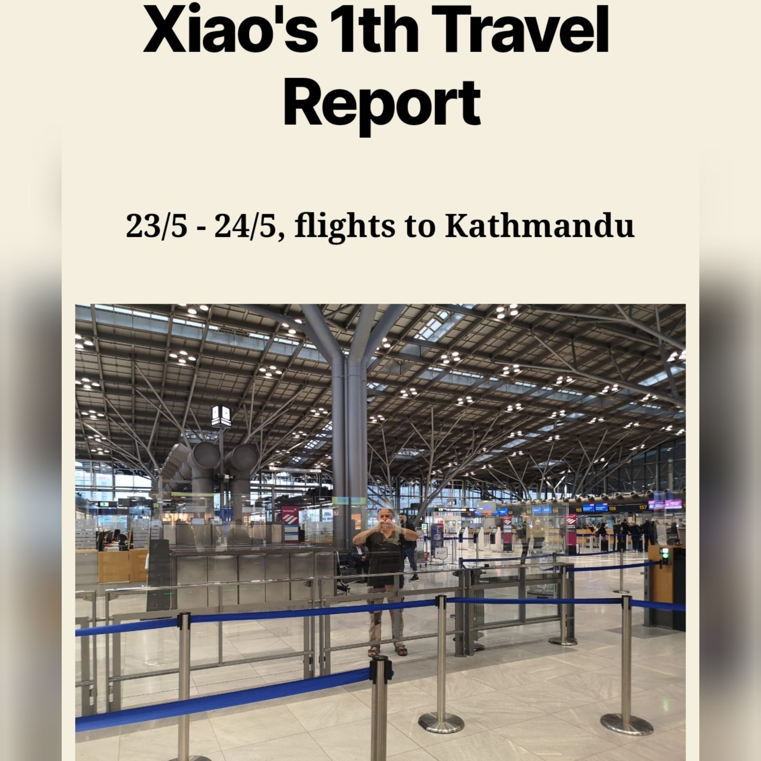 🇬🇧 Hello dear friend, with all the lovely wishes from you I startade my trip. Taking farewell was tearful, but hopeful and heartful too. 📍Stuttgart airport, 23/5 🇩🇪 Hallo lieber Freund, mit all den lieben Wünschen von Dir habe ich meine Reise angetreten. Der Abschied war tränenreich, aber auch hoffnungsvoll und voller Herz.🇬🇧 On the way I had to change planes to three countries, Austria, Saudi Arabia and Dubai. 📍Wien airport shuttle bus 🇩🇪 Auf dem Weg dorthin musste ich in drei Ländern das Flugzeug wechseln: Österreich, Saudi-Arabien und Dubai.🇬🇧 Above the clouds, I was listening to a song, it says, „You are forever pure, You are forever true, and the dream of this world can never touch you. So give up your attachment, and give up your confusion, and fly to that space, that’s beyond all illusion…“ 🇩🇪 Über den Wolken hörte ich ein Lied, in dem es heißt: „Du bist für immer rein, du bist für immer wahr, und der Traum dieser Welt kann dich niemals berühren. Also gib deine Anhaftung auf, und gib deine Verwirrung auf, und fliege zu dem Raum, der jenseits aller Illusion ist…“📍Dammam Airport, Saudi Arabia🇬🇧 Areas that appear to have been abandoned by humans. In front of nuture, human beings are less capable than desirable. Gottseidank. 🇩🇪 Gebiete, die vom Menschen verlassen zu sein scheinen. Vor der Natur ist der Mensch weniger fähig als wünschenswert. Gottseidank.🇬🇧 A syrien friend I made in airplane. 📍Shajha airport, Dubai, 24/5 🇩🇪 Ein syrischer Freund, den ich im Flugzeug kennengelernt habe.🇬🇧 He wrote on my diary book, „A coincidental encounter is better than thousand meeting.“ 🇩🇪 Er schrieb in mein Tagebuchbuch: „Eine zufällige Begegnung ist besser als tausend Treffen.“📍Above Kanthmandu📍Kanthmandu airport🇬🇧 On the way to my hostel. Got picked up by the driver from hostel 📍Kanthmandu 🇩🇪 Auf dem Weg zu meinem Hostel. Wurde vom Fahrer des Hostels abgeholt🇬🇧 After a long journey of 26 hours, I finally arrived in Kathmandu, the capital of Nepal, exhausted but happy 📍‚Restup Hostel‘, Kanthmandu 🇩🇪 Nach einer langen Reise von 26 Stunden kam ich schließlich erschöpft, aber glücklich in Kathmandu, der Hauptstadt von Nepal, an.🇬🇧 On the rooftop of hostel. 🇩🇪 Auf der Dachterrasse des Hostels.🇬🇧 It will be a good rest place here. I do not have any plan for the time here, just go with the flow and see what will happen to me. Namaste. 🙏🏼❤️ 🇩🇪 Es wird hier ein guter Ort zum Ausruhen sein. Ich habe keinen Plan für die Zeit hier, lasse mich einfach treiben und schaue, was mit mir passiert. Namaste. 🙏🏼❤️