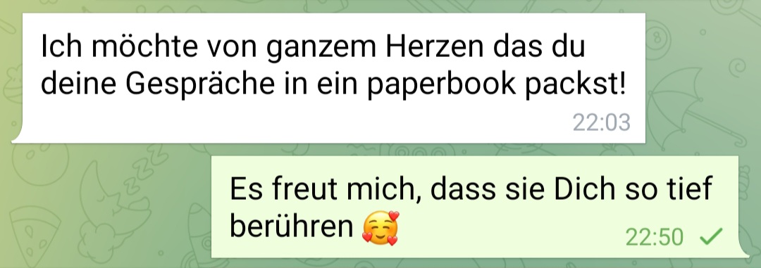 Es geht also um persönliche Anwendung, nicht um bloßes Wiederholen. Deine Interpretation ist die lebendige Umsetzung, die für dich jetzt Sinn macht – genau so, wie Gnade wirken will.