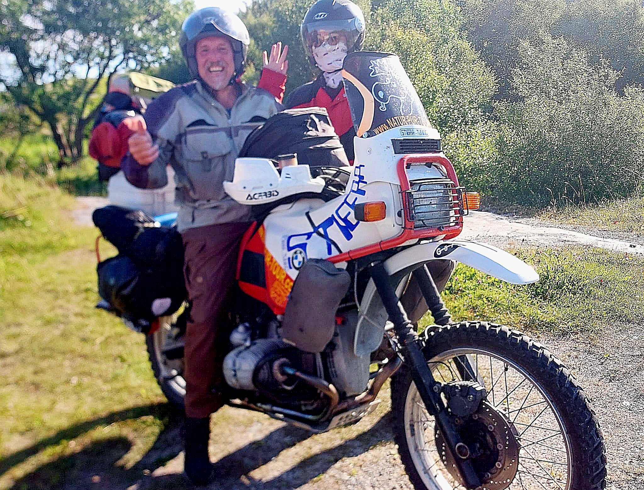 Irgendwie habe ich alles untergebracht auf der Eigenumbau STIEFRA-BMW – für die erste größere Tour mit ihr, zu zweit mit vollem Gepäck 🧐Geplant sind ca. 1500 km und 10 Tage – auf kleinsten Straßen durch und übers Grenzgebirge und auf der Kystriksveien-Küstenstraße, einer der schönsten Straßen der Welt (inkl. 7 Fähren) von Namsos bis zum Saltstraumen-Gezeitenstrom der Eismeerküste entlang – aber das Leben darf natürlich führen und wirken……bei diesen unglaublichen Wetteraussichten für die Eismeerküste 😎 und es wurde noch wärmer und hielt die ganze Reise über, auch über den Polarkreis hinaus 🙏Freitag, 11. Juli 2025, kurz vor 10 Uhr, 17 Grad und auflockernde Bewölkung – wir sind startbereit 🥰Noch das Handy als Offline-Navi in die Hülle im Cockpit eingeklickt – die es auch durch Schotterstrecken-Schlaglöcher in voller Fahrt gummigelagert weich und sicher festhält und zum Fotografieren einfach und schnell freigibt – eine bereits beim Burgman-Motorroller bewährte Frange-Erfinderung 😘Da wir mit einem „Paris-Dakar“ Motorrad unterwegs sind, habe ich für die ca. 500 km zum und durchs Grenzgebirge bis zur Eismeerküste viele Schottersträßchen ausgewählt – beginnend gleich einen Kilometer hinter dem Inseldorf bis kurz vor Sorsele……wo ich nach gut 70 km volltanke – und beim Wegfahren Leben sei Dank noch den fehlenden Geldbeutel bemerken darf, den ich auf die Packtasche gelegt habe 🙃 🙏Auf den gut 60 km zwischen dem Inlandsvägen in Sorsele und dem Blåvägen kommen wir durch Straßenerneuerung auf ungeplante 12 km Schotter, der so grob ist, dass ich ein paar mal den Fuß von der Raste nehmen muss um einen schlingernden Sturz zu vermeiden – Dejavü von nach dem Start unserer Rollertour gen Deutschland zwischen Slagnäs und Sorsele wo wir damals an den Rand des Grabens geschlittert wurden 🙃Nach 13 Asphalt-km auf dem Blåvägen geht es hinter Slussfors wieder auf Schotter gut 30 km bis Dikanäs – geplant 😘In Dikanäs zusammen mit der Sonne angekommen, gibt es auf der Terasse des idyllischen Cafés Blätterteig-Gebäck mit Erdbeeren&Eiscreme-Füllung 🤩Knapp 4 km hinter Dikanäs überqueren wir den Durchfluss zwischen dem Dikasjön- und Vojmsjön-SeeNach gut 30 Asphalt-km geht es hinter Eriksberg rechts ab – wieder knapp 30 km auf Schotter bis zur ‚Vildmarksvägen‘ (Wildnisstraße) bei Saxnäs.Hinterm Ort Klimpfjäll überqueren wir auf ihr den Zulauf des Kultsjön-Sees, an dessen Ufern die Straße knapp 40 km entlang ging. Inzwischen sind wir auf knapp 750 m Höhe……und fahren weiter den ‚Stekenjokkpass‘ hinauf, der höchste, asphaltierte Pass Schwedens.Am Stekenjokk-Rastplatz haben wir einen Fußpfad hoch genommen (65°05’18″N 14°27’28″E)……und genießen jetzt das grandiose Panorama über den Stausee und das Grenzgebirge zum 7 km (Luftlinie) entfernten Norwegen.Die Steinmännchen……haben sich, wider meines Erwartens, durch meine Sozia nicht vermehrt 😘Weiter geht’s über die 876 m Passhöhe und das ‚Borgafjäll-Gebirge‘ hinunter wo wir vorbei am Leipigvattnet-See, dem Överflyn-Seen sowie dem Ankervattnet-und Mesvattnet-See, und dann am nördlichen Ende des Stor-Blåsjön-See vom Vildmarksvägen nach rechts auf die kleine Straße gen Norwegen abbiegen……wo nach 6 km die grüne Grenze kommt – und damit Xiaos Norwegen-Premiere 😘Nach knapp 20 km am Hundnegejaevrie-See und Hudningselva-Fluss entlang, sehen wir von der Straße aus auf der anderen Flussseite eine Rasthütte und Kote und kurz darauf finden wir auf einem Schotterweg dorthin – trotz der tollen Bedingungen des Platzes ist er uns (noch) zu schattig und mückenreich (64°53’21.5″N 13°40’32.6″E)Ab dem Ort Røyrvik geht’s am Limingensee entlang, wo wir nach 23 km einen Strandplatz entdecken und die knapp 300 m Feldweg hinunterfahren. Ein Schwede der dort sein Ferienhaus hat verweist uns an seine schwedische Nachbarin aber diese lässt uns wissen dass sie das Haus vom anliegenden Bauer gemietet hat und uns ohne seine Zustimmung nicht in ihrem Strandgarten Zelten lassen möchte (64°46’33.4″N 13°40’33.8″E) – also fahren wir weiter dem See entlang Richtung Gäddede/Schweden.Nach dem 70km-Norwegenabstecher sind wir bei Bränna, durch die diesmal sogar unbeschilderte Grenze, unbemerkt wieder in Schweden 🙃Knapp 3 km nach der „Grenze“ fällt uns ein traumhafter Platz auf einer 300 Meter langen, schmalen Landzunge am Kvarnbergsvattnet-See zu (64°38’35.6″N 13°45’55.6″E)Eine ostdeutsche Wohnmobilfamilie ist schon da und ein holländisches Wohnwagenpaar lässt sich gleichzeitig neben uns nieder.Nach dem, für Wildcamper-Biker typischen, bodennahen Kochen und Abendessen, sowie natürlich meinem Baden, genießen wir den Sonnenuntergang zwischen Zelt und Wasser..Um 23.30 schließen Sonne und wir die Augen6.30 – Guten Morgen Xiaoely 😘Solange unsere östlichen und westlichen Nachbarn noch schlafen, kann ich (wie 1989 beim Seitenwagencross-Training in Frankreich) vom „Thron“ aus bei offener Tür die tolle Natur genießen.Am Abend hatte ich die lieben Ossis noch gefragt, ob wir zum Frühstücken „ihre“ Tischgarnitur benutzen dürften – und als ich aufstand, stand sie neben unserem Zelt 😘🙏Echter Luxus, nicht auf dem Boden zubereiten und essen zu müssen…Bevor wir kurz vor halb Neun loskommen bringen wir, mit einem Dankesgruß samt Einladung in unser Inseldorf und Kontaktdaten, noch die Garnitur zurück und verabschieden uns, schon am Losfahren, noch herzlich vom holländischen Paar.Nach den 300 Metern Feldweg der Landzunge, geht es auf der Naturstraße blütenvoll „unserem“ Kvarnbergsvattnet-See entlang……dem gut 30 km entfernten Grenzort Gäddede entgegen.Schon vor 9 Uhr ist dort der 35-Liter-Tank für die Eismeerküste gefüllt – noch 150 km bis zum ersten Fjord – Xiaos Premiere 😘Gut 4 km hinter Gäddede sind wir wieder in Norwegen.Es geht der gut 150 km entfer