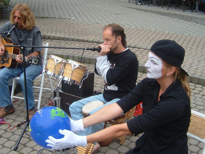 Nicole stellt die Aussagen der Lieder ihres Mannes pantomimisch dar, hier 2005 zum Lied „Muetter Ärde“:
